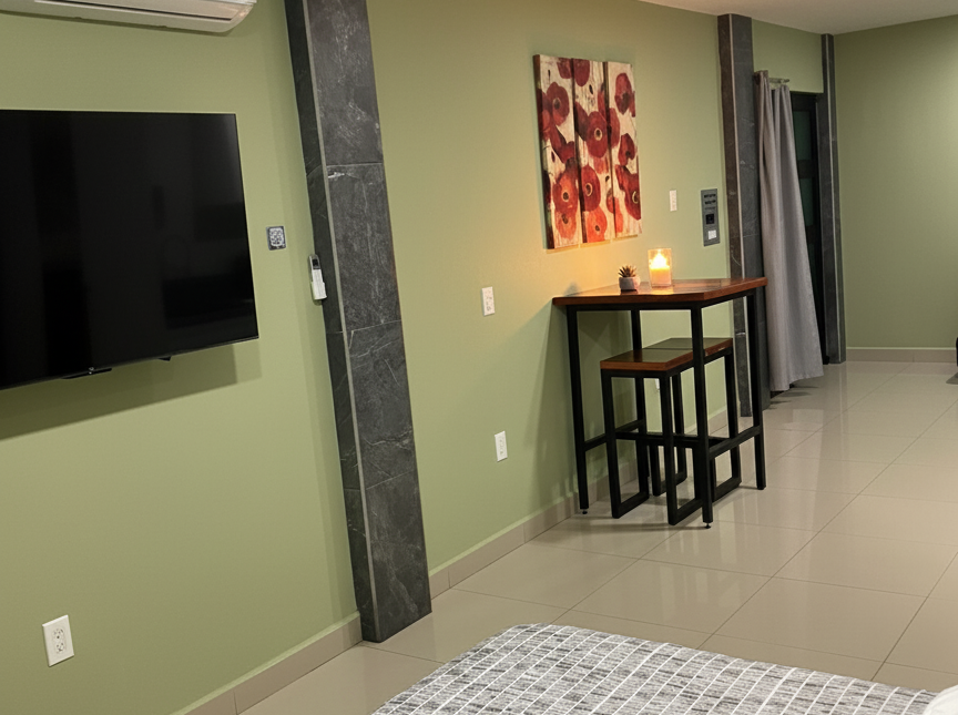 Junto con el departamento 1, 2 y 3, el departamento 4 se encuentra al fondo del pasillo del primer piso. Cuenta con cama Queen size, un sofá cama, aire acondicionado, cocina completa, baño completo, SMART TV con netflix, hbo, disney + y WIFI. Ideal para 4 personas o máximo 6 en un colchón inflable (tiene costo extra).